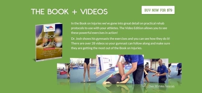 Dr. Josh shows his gymnasts the exercises and you can see how they do it! There are over 30 videos so your gymnast can follow along and make sure they are getting the most out of the Book on Injuries.